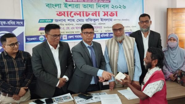 বরিশালে বাংলা ইশারা ভাষা দিবস ২০২৬ উপলক্ষে আলোচনা সভা অনুষ্ঠিত হয়েছে। ‘বাংলা ইশারা ভাষার প্রসার করি, স্মার্ট বাংলাদেশ গড়ে তুলি’ এই প্রতিপাদ্যকে সামনে রেখে বাংলা ইশারা ভাষা দিবস পালন করা আরও পড়ুন