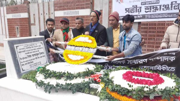 আজ মুক্তি যুদ্ধ চলাকালীন বাংলাদেশের অস্থায়ী রাষ্ট্রপতি জাতির জনক বঙ্গবন্ধুর বিশ্বস্ত সহচর জাতীয় নেতা সৈয়দ নজরুল ইসলামের সুযোগ্য সন্তান ও বাংলাদেশ আওয়ামী লীগের সাবেক সাধারন সম্পাদক সৈয়দ আশরাফুল ইসমার এর ৫ম মৃত্যু বার্ষিকীতে বনানী কবরস্থানে বঙ্গবন্ধু সাস্কৃতিক জোটের শ্রদ্ধা নিবেদন। উপস্থিত ছিলেন বঙ্গবন্ধু সাংস্কৃত জোটের কার্যকরী সভাপতি স্বাধীন বাংলা বেতার কেন্দ্রের কণ্ঠশিল্পী রফিকুল আলম, সাধারণ সম্পাদক অরুণ সরকার রানা,রোকন উদ্দিন পাঠান, রাজ সরকার সহ জোটের নেতৃবৃন্দ।