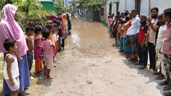 গাজীপুরের কালিয়াকৈরে পানি নিষ্কাশনের মুখে ঈদের আগে নন্দন পার্কের মাটির বাঁধে সৃষ্টি হয়েছে জলাবদ্ধতা। ফলে ঈদ ও বৈশাখী উৎসবে পার্কে রমরমা ব্যবসা হলেও চরম দুর্ভোগে পড়েন স্থানীয় প্রায় পাঁচ হাজার মানুষ। নিজেরা মেশিন দিয়ে সেচের মাধ্যমে কোনরকমে পানি নিষ্কাশনের ব্যবস্থা করলেও বৃষ্টি হলে ঘরে ঘরে আবর্জনা-ময়লাযুক্ত পানি ঢুকে পড়ার আশঙ্কা করছেন দুর্ভোগে পড়া মানুষ গুলো। এখান থেকে বিকল্প ব্যবস্থার মাধ্যমে স্থায়ী সমাধান চান ওই গ্রামবাসী। এলাকাবাসী, ভুক্তভোগী পরিবার ও নন্দন পার্ক কর্তৃপক্ষ সূত্রে জানা গেছে, কালিয়াকৈর উপজেলার আটাবহ ইউনিয়নের ২নং ওয়ার্ডের বড়ইছুটি গ্রামে প্রায় দেড়শতাধিক বাড়িতে প্রায় ৫ হাজার লোকের বসবাস। এসব বাসা-বাড়ির আবর্জনা-ময়লাযুক্ত পানি যুগের পর যুগ ধরে কৃষি জমির উপর দিয়ে প্রবাহিত হতো। কিন্তু কালিয়াকৈর উপজেলার বড়ইছুটি মৌজার ও পার্শবর্তী ঢাকার সাভার উপজেলার বাড়ইপাড়া মৌজার প্রায় ৮০ বিঘা কৃষি জমি ভরাট করে গড়ে উঠেছে নন্দন পার্ক নামে একটি বিনোদন কেন্দ্র। এর মধ্যে বেশির ভাগ জমিই বড়ইছুটি গ্রামের মানুষের। এছাড়াও ওই পার্কের বিরুদ্ধে চন্দ্রা-নবীনগর মহাসড়কের পাশে বনবিভাগের জমিও জবর-দখলের অভিযোগ রয়েছে। ওই পার্কের পশ্চিম/ উত্তর পাশের সীমানা প্রাচীর ঘেষে রযেছে বড়ইছুটি গ্রাম। স্থানীয়দের সহযোগীতায় ওই পার্ক প্রতিষ্ঠা হলেও র্দীঘদিন ধরে পার্কের এক পাশ দিয়ে এসব বাসা-বাড়ির আবর্জনা-ময়লাযুক্ত পানি নিষ্কাশন হয়ে আসছিল। কিন্তু হঠাৎ করে ঈদের আগে ওই পানি নিষ্কাশনের মুখে উচু করে মাটির বাঁধ দেয় নন্দন পার্ক কর্তৃপক্ষ। ফলে আবর্জনা-ময়লাযুক্ত পানিতে সৃষ্টি হয়েছে জলাবদ্ধতা। একমাত্র রাস্তাসহ বাসা-বাড়িতে ঢুকে পড়ছে আবর্জনা-ময়লাযুক্ত পানি। ওই পানি ঠেকাতে কেউ ঘরের পাশে দেয় বাঁধ, আবার কেউ উঠানের পানি সেচের মাধ্যমে ফেলছেন বাইরে। চরম দুর্ভোগে পড়েছেন ওই গ্রামবাসী। সবচেয়ে বেশি দুর্ভোগে পড়েন শিশু ও রোগীরা। সৃষ্টি হচ্ছে মশা, মাছিসহ বিভিন্ন রোগ-বালাই। এর সমধান চেয়ে উপজেলা নির্বাহী কর্মকর্তা ও স্থানীয় ইউপি চেয়ারম্যানের কাছে নালিশ জানান ওই গ্রামবাসী। তারা ঘটনাস্থল পরিদর্শন করলেও বিকল্প ব্যবস্থার মাধ্যমে কোনো সমস্যার সমাধান করা হয়নি এখন পর্যন্ত । এর সমাধান চেয়ে বিক্ষোভ করেছে গ্রামবাসী। এরই মধ্যে চলে আসে বড় দুটি উৎসব ঈদুল ফিতর ও পহেলা বৈশাখ। এ দুটি উৎসবে ওই পার্কে রমরমা ব্যবসা হলেও পার্কের বাধের কারনে সৃষ্ট জলাবদ্ধতায় চরম দুর্ভোগ পোহাচ্ছেন হাজার হাজার মানুষ। দুর্ভোগে পোহাচ্ছেন ওই গ্রামের ইফাজাতুল উলুম ইসলামিয়া মাদ্রাসা, আফাজ উদ্দিন মোল্লা স্কুল এনড কলেজ, মোল্লাবাড়ি জামে মসজিদসহ বিভিন্ন প্