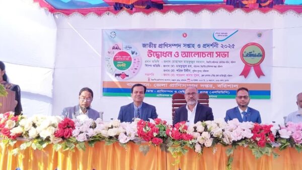 বরিশালে জাতীয় প্রাণিসম্পদ সপ্তাহ ও প্রদর্শনী ২০২৫ উপলক্ষে র্যালি এবং আলোচনা সভা অনুষ্ঠিত হয়েছে। “দেশীয় জাত, আধুনিক প্রযুক্তি প্রাণিসম্পদে হবে উন্নতি” এই স্লোগান নিয়ে ২৬ নভেম্বর বুধবার সকাল ১০টায় জেলা প্রাণিসম্পদ অধিদপ্তর বরিশালের বাস্তবায়নে প্রাণিসম্পদ ও ডেইরী উন্নয়ন প্রকল্প (এলডিডিপি), প্রাণিসম্পদ অধিদপ্তর, মৎস্য ও প্রাণিসম্পদ মন্ত্রণালয়ের সহযোগিতায় নবগ্রাম রোডে জেলা প্রাণিসম্পদ কার্যালয় চত্বরে প্রাণিসম্পদ প্রদর্শনী ২০২৫ এর উদ্বোধন অনুষ্ঠান অনুষ্ঠিত হয়। অনুষ্ঠানে প্রধান অতিথি ছিলেন বিভাগীয় কমিশনার মোহাম্মদ মাহফুজুর রহমান। অনুষ্ঠানে সভাপতিত্ব করেন জেলা প্রশাসক মোঃ খায়রুল আলম সুমন। অনুষ্ঠানে বিশেষ অতিথি ছিলেন বরিশাল বিভাগীয় প্রাণিসম্পদ অধিদপ্তরের পরিচালক মোঃ মাহফুজুল হক, জেলা পুলিশ সুপার মোঃ শরিফ উদ্দীন। অনুষ্ঠানে স্বাগত বক্তব্য প্রদান করেন জেলা প্রাণিসম্পদ কর্মকর্তা ডা. মোঃ মোস্তাফিজুর রহমান। এছাড়াও অনুষ্ঠানে উপস্থিত ছিলেন জেলা প্রজনন কর্মকর্তা ডা. নাসিরউদ্দিন আহমেদ, জেলা প্রশিক্ষণ কর্মকর্তা ডা. সুশান্ত দাস, আঞ্চলিক প্রাণিরোগ অনুসন্ধান গবেষণাগার সিনিয়র সাইন্টিফিক অফিসার ডা. ইব্রাহিম খলিল, সদর উপজেলা প্রাণিসম্পদ কর্মকর্তা ও ভেটেরিনারি সার্জন ডা. কামরুন নাহার কলি সহ আরো অনেকে। সভা সঞ্চালনা করেছেন অতিরিক্ত জেলা প্রাণিসম্পদ অফিসার ডা. জুঁই বিশ্বাস। শুরুতে জেলা প্রাণিসম্পদ কার্যালয় চত্বরে র্যালি বের হয়ে নবগ্রাম রোড প্রদক্ষিণ করে জেলা প্রাণিসম্পদ কার্যালয় গিয়ে শেষ হয়। অনুষ্ঠানে প্রধান অতিথিসহ অন্যান্য বক্তারা প্রাণিসম্পদে অধিক অংশীজনের সম্পৃক্তকরণ এবং নিরাপদ প্রাণিজ আমিষ উৎপাদন ও সরবরাহের বিষয়ে গুরুত্বারোপ করেন। অনুষ্ঠানে প্রধান অতিথি আরো বলেন বাংলাদেশ সরকার প্রাণিসম্পদ উন্নয়নে বিভিন্ন কৃষক বান্ধব কর্মসূচী গ্রহণ করেছেন। পরে অতিথিরা প্রদর্শনীতে অংশগ্রহনকারী খামারিদের বিভিন্ন স্টল পরিদর্শন করেন। প্রদর্শনীতে বিভিন্ন পর্যায়ের খামারী, উদ্যোক্তা, সরকারি ও বেসরকারি প্রতিষ্ঠান স্টলে অংশ গ্রহণ করেছে। ২৬ নভেম্বর থেকে ২ ডিসেম্বর পর্যন্ত ৭ দিন ব্যাপি বিভিন্ন কর্মসূচীর সম্পাদনের মাধ্যমে শুরু হয়েছে প্রাণিসম্পদ সপ্তাহ। কর্মসূচীগুলোর মধ্যে রয়েছে প্রাণিসম্পদ প্রদর্শনী, বিনামূল্যে গবাদিপশু ও হাঁস-মুরগির ভ্যাক্সিনেশন ক্যাম্পেইন, কৃমিনাশক বিতরণ, প্রাণিসম্পদ উন্নয়নে তরুণ উদ্যোক্তাদের ভাবনা শীর্ষক মতবিনিময়, কৃত্রিম প্রজনন, স্কুল ফিডিং, কুইজ প্রতিযোগিতা ও সমাপনী এবং পুরস্কার বিতরণী অনুষ্ঠান।