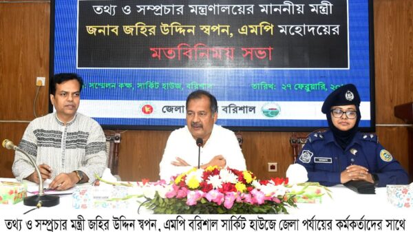 মন্ত্রী শুক্রবার সকাল ১১:০০টায় বরিশাল সার্কিট হাউজের সম্মেলনকক্ষে জেলা পর্যায়ের কর্মকর্তাদের সাথে মতবিনিময় সভায় প্রধান অতিথির বক্তৃতায় এসব কথা বলেন।