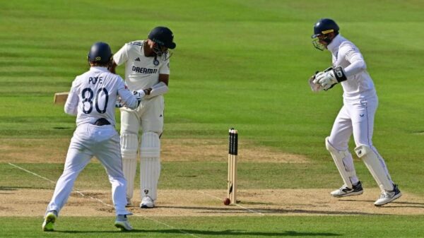 শেষ ব্যাটার মোহাম্মদ সিরাজ বলটা ডিফেন্ড করেছিলেন। সেটি গড়িয়ে গড়িয়ে গিয়ে লাগলো স্টাম্প। পড়ে গেলো বেল। বোলার শোয়েব বশিরের উচ্ছ¡াস তখন আর দেখে কে! উচ্ছ¡াসে তো তখন ফেটে পড়ে পুরো